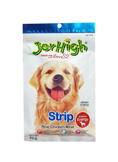 تشویقی جرهای مدل استریپ یک میانوعده نرم و خوشخوراک برای سگهاست که با مرغ واقعی تهیه شده و به شکل نوارهای باریک و قابلجویدن طراحی شده.