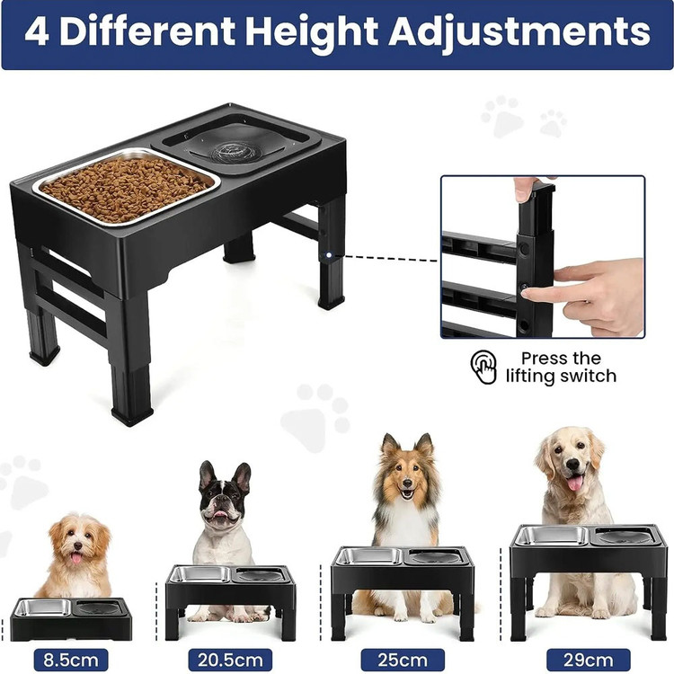 ابعاد محصول ۴۴×۲۶ سانتیمتر بوده و ارتفاع پایه در ۴ حالت قابل تنظیم است: از ۸ سانتیمتر تا ۲۹ سانتیمتر، متناسب با قد و نژاد پت شما.
