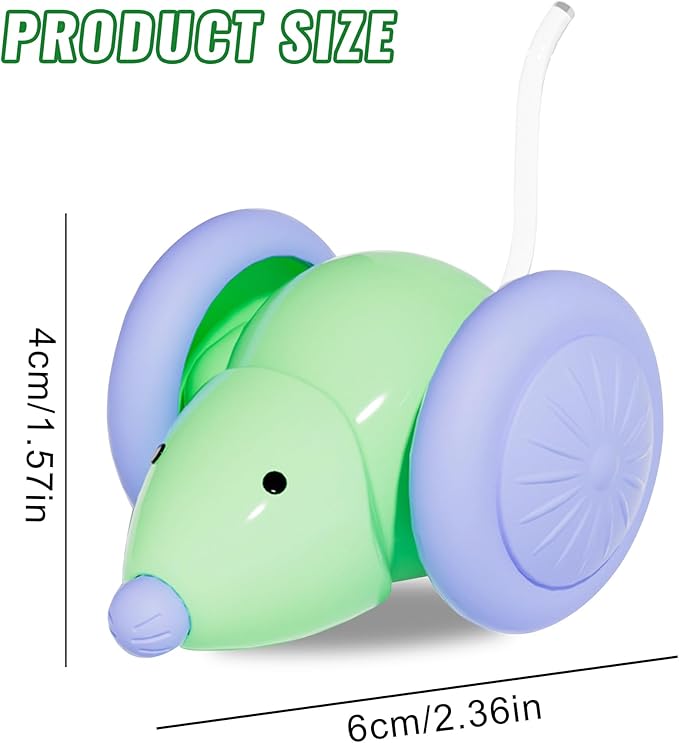 این موش با طراحی کوچک و وزن سبک ، بهراحتی روی سطوح مختلف مثل سرامیک، پارکت یا فرش حرکت میکنه و با موتور داخلی قدرتمند، حرکاتی نامنظم و شبیه به موش واقعی انجام میده که توجه حیوان رو کاملاً جلب میکنه.