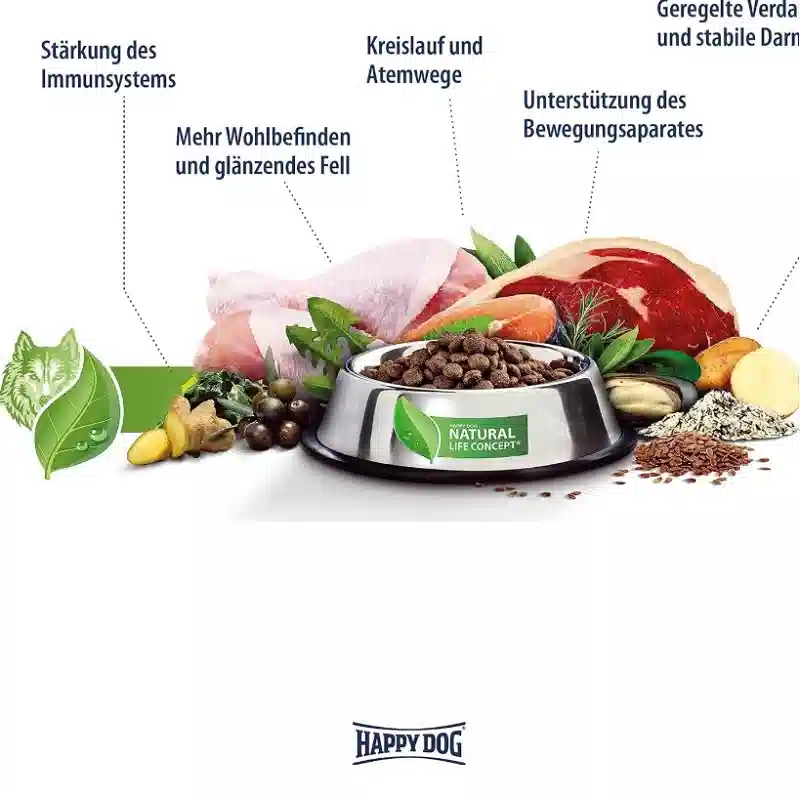 برند Happy Dog یکی از معتبرترین تولیدکنندگان غذای سگ در آلمان است و محصولاتش با استانداردهای سختگیرانه اروپایی تولید میشوند.