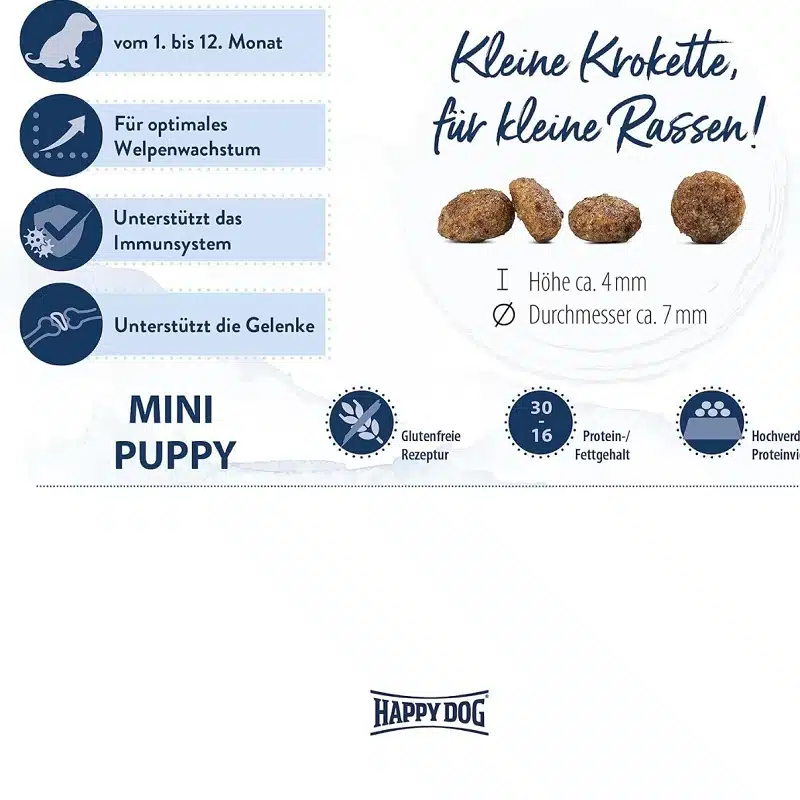 سری Mini Puppy از برند Happy Dog با هدف تأمین نیازهای تغذیهای تولهسگهای نژاد کوچک طراحی شده است.