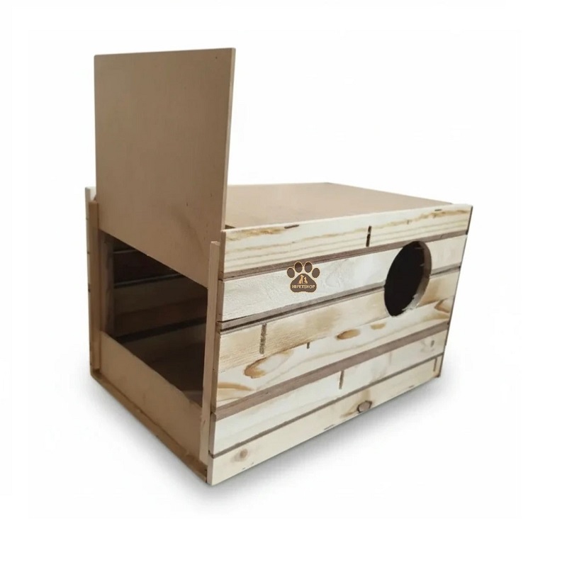 این لانه از چوب طبیعی ساخته شده و فضای داخلی مناسبی برای استراحت یا تخمگذاری پرندگان فراهم میکند. چوب به دلیل ساختار طبیعی خود، محیطی گرمتر و امنتر نسبت به لانههای پلاستیکی ایجاد میکند و به همین دلیل بسیاری از پرورشدهندگان برای تکثیر پرندگان زینتی از لانه چوبی عروس هلندی یا لانه مرغ عشق استفاده میکنند.